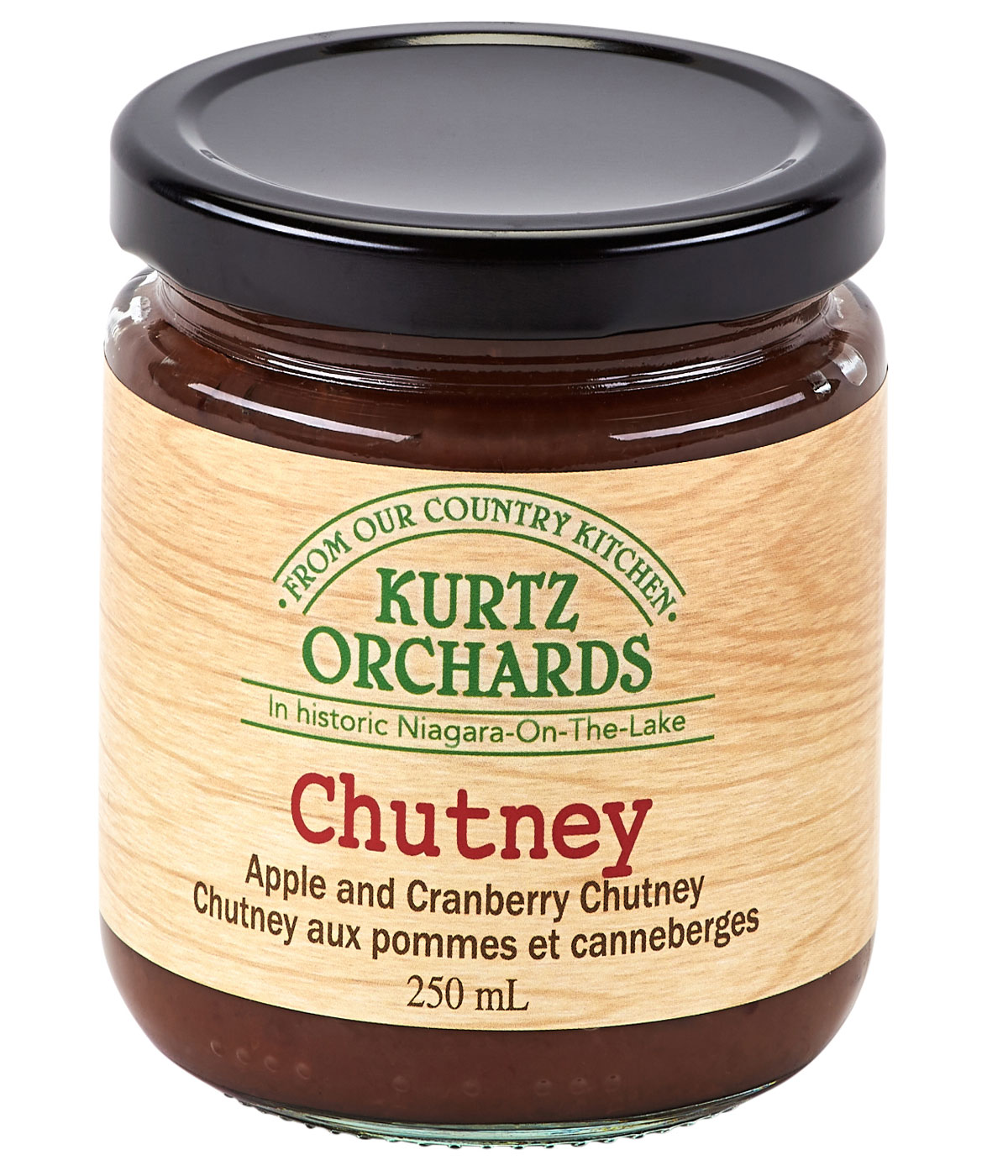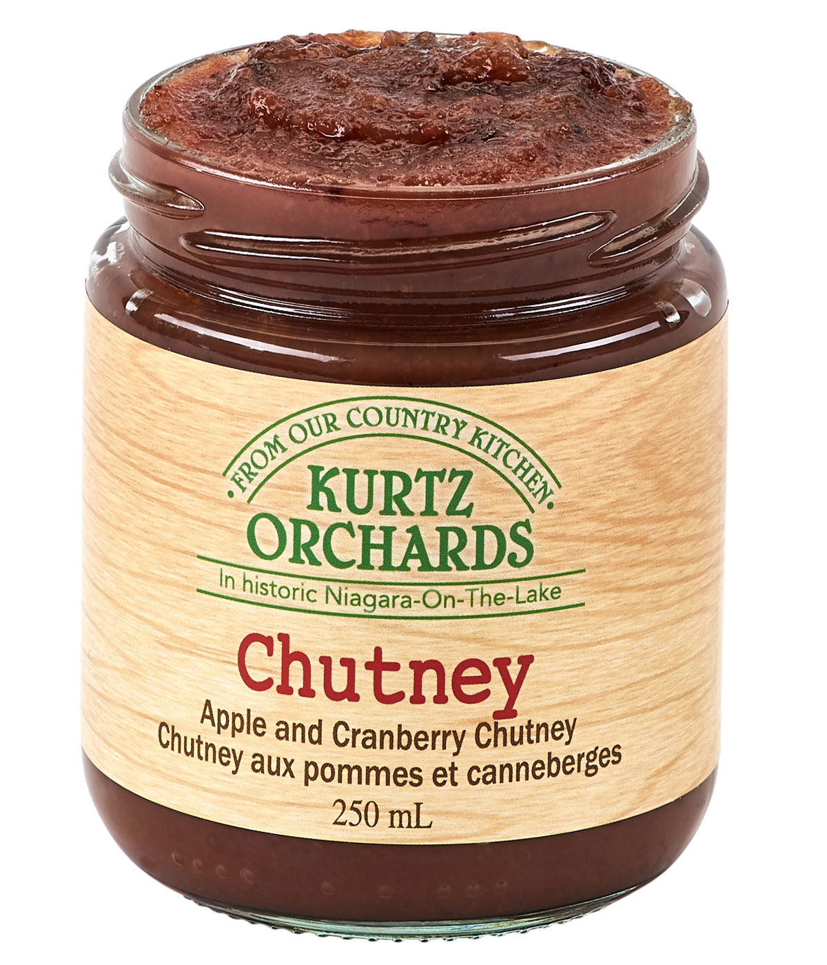 Apple and Cranberry Chutney: Sweet Niagara Apples simmered with tart cranberries, onions and a blend of our herbs and spices create a delightful balance between sweet and savory in this condiment. This ‘all natural’ creamy chutney is a welcome addition to any meal, snack or appetizer.