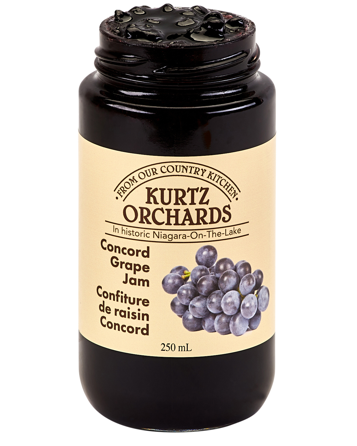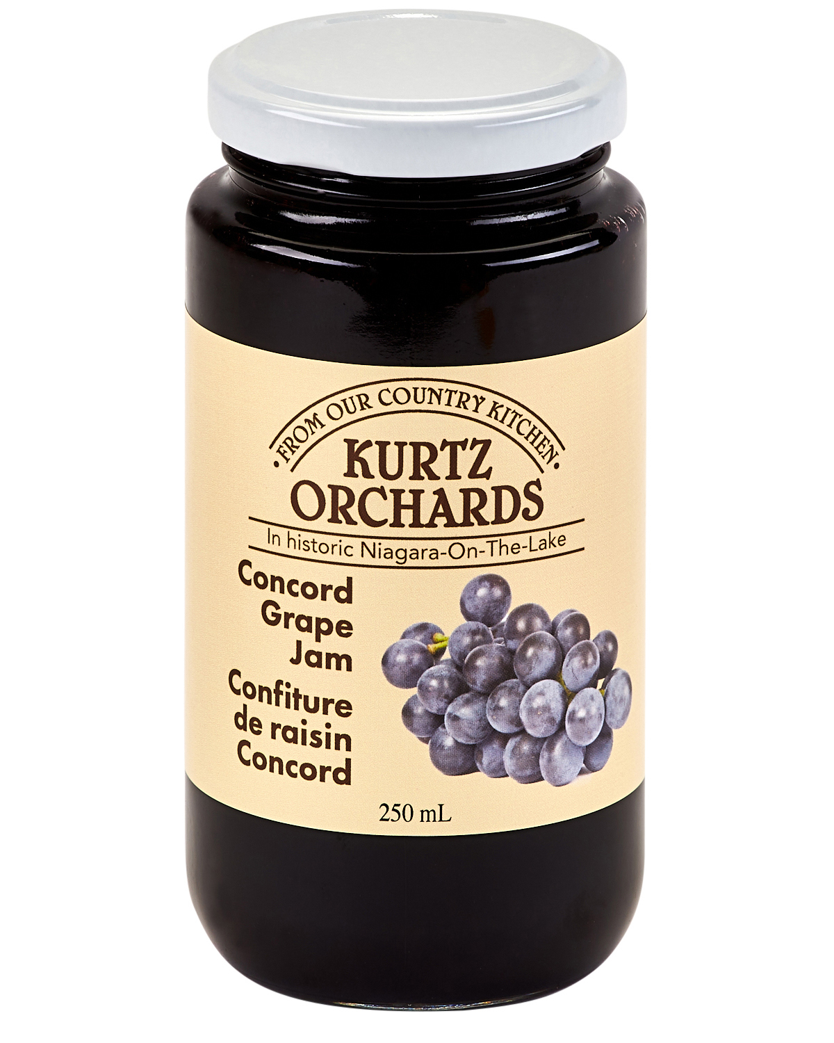 Concord grapes from Niagara vineyards give this jam a “real retro” taste from the past. It takes you back to the days of the “Fabulous Fifties’ Lunchbox Classic”, with your classic peanut butter and jam sandwich taste.