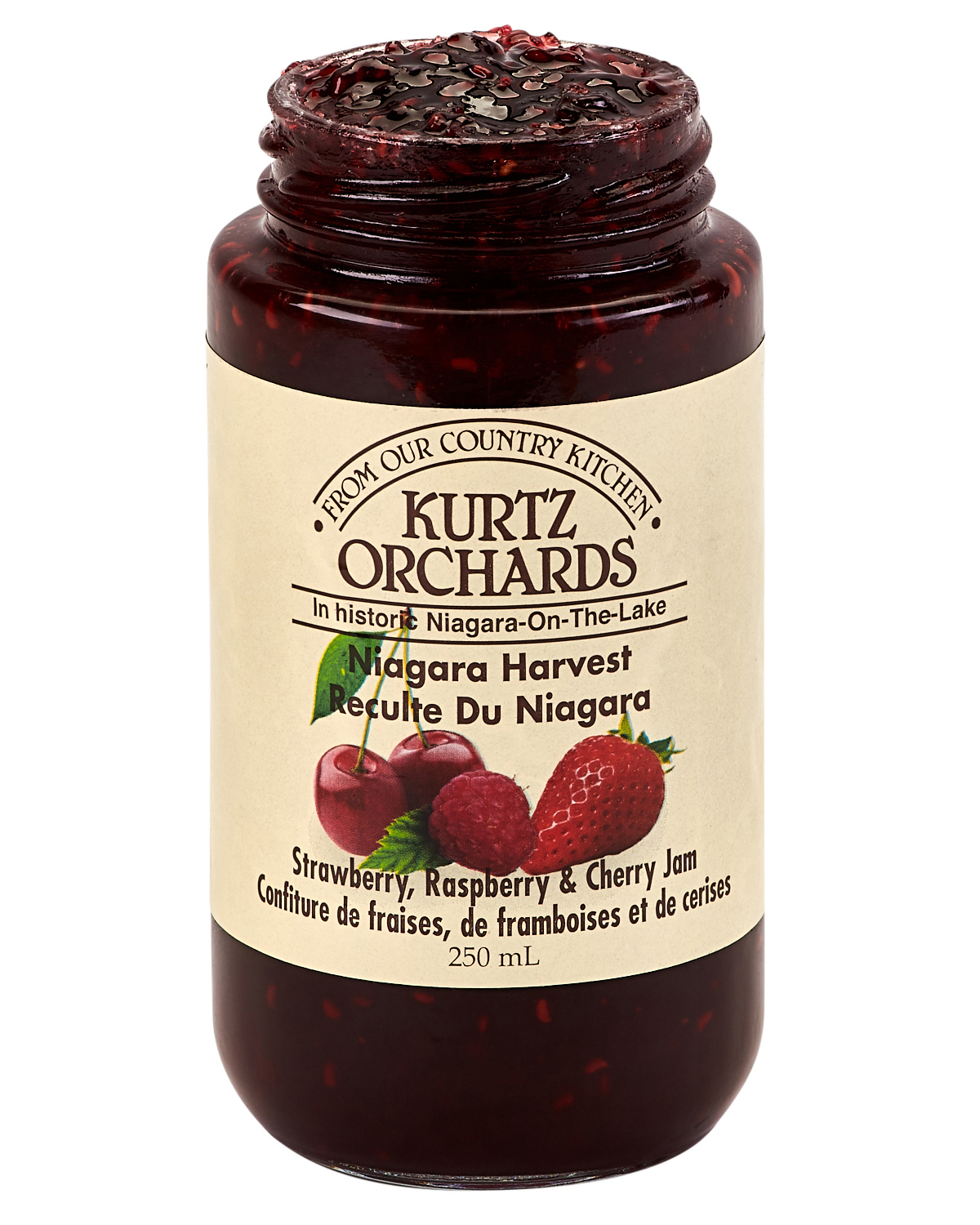 Niagara “favorites” are the “stars” of this customer rated “Best Jam”. Strawberries, raspberries and red cherries are simmered together to create this amazing taste sensation.